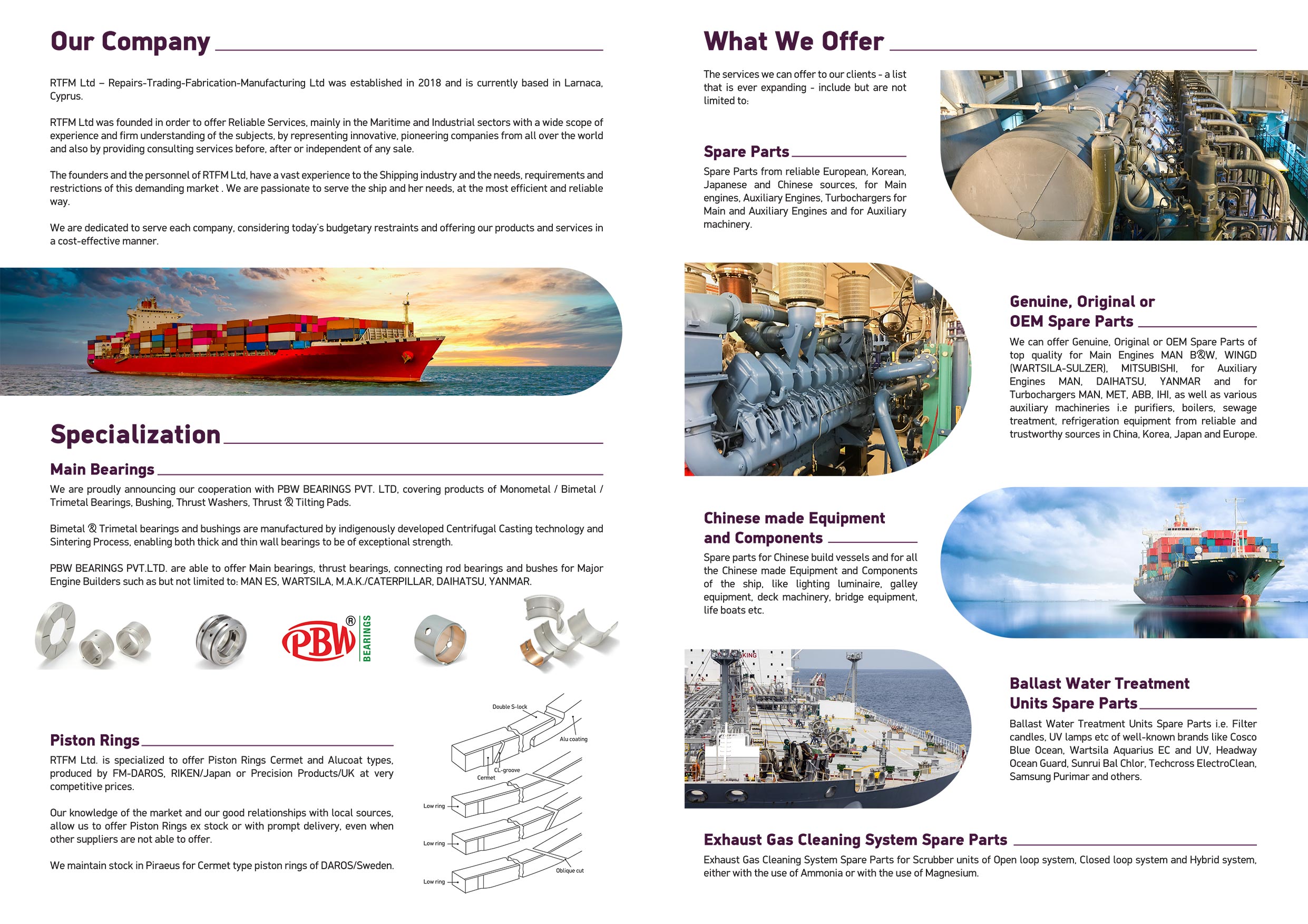 Main Engines MAN B&W, WINGD (WARTSILA-SULZER), MITSUBISHI, for Auxiliary Engines MAN, DAIHATSU, YANMAR and for Turbochargers MAN, MET, ABB, IHI, as well as various auxiliary machineries